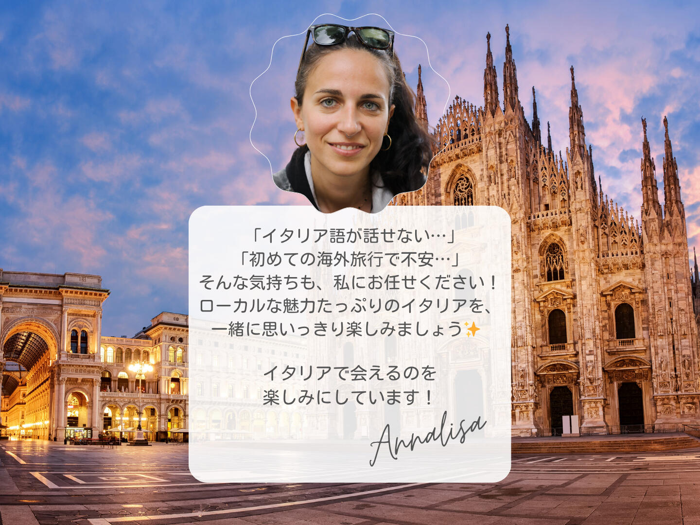 イタリア在住の日本語対応ツアーリーダーのアンナリーザと申します。イタリアのミラノ生まれミラノ育ちで、旅⾏が⼤好き