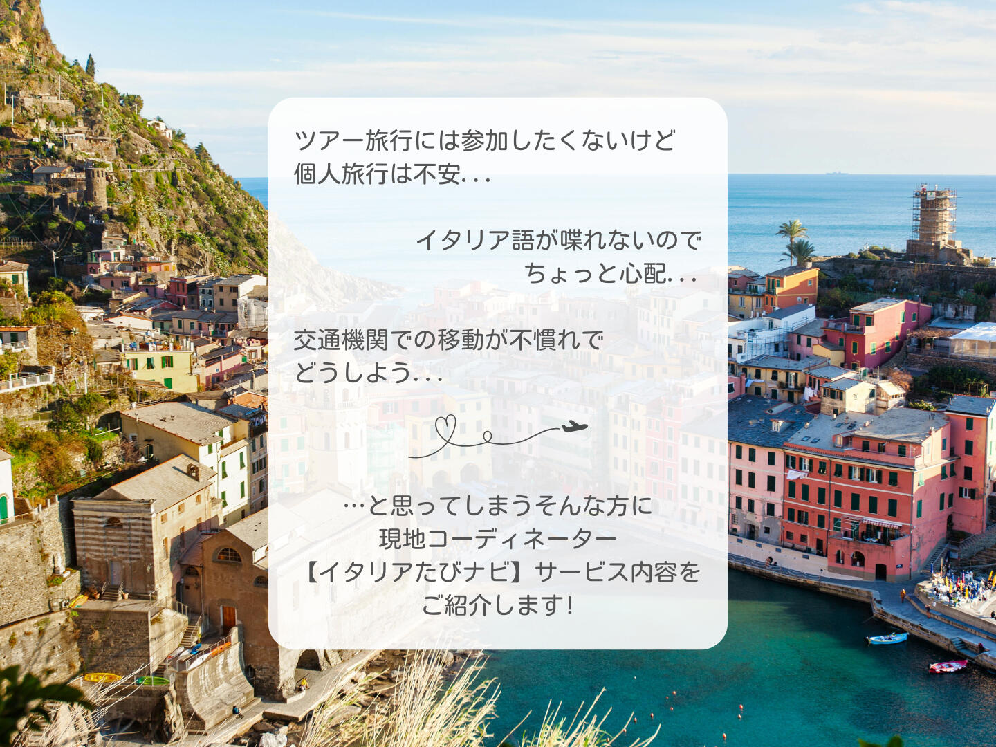 イタリアたびナビとは、お客様のご要望に合わせて旅程コーディネーションサービスです。